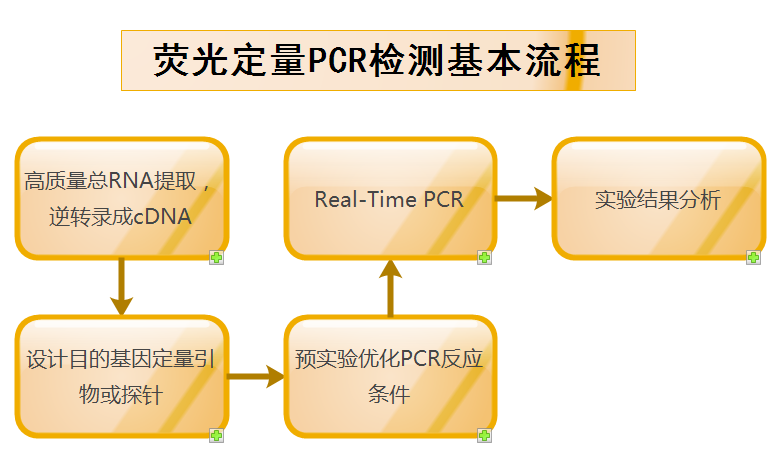 高质量总RNA提取,逆转录成cDNA(此技术服务可选)——根据客户提供基因序列设计定量引物或探针——预实验优化PCR反应条件——Real-Time PCR——实验结果分析