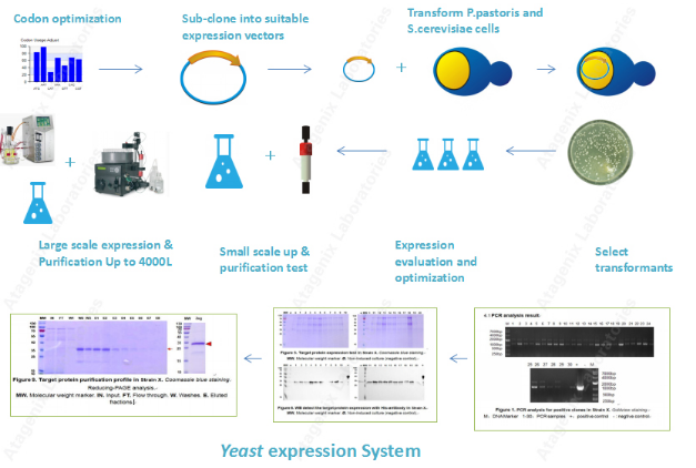 酵母表达系统兼有原核和高等真核系统的优点,已广泛用于外源蛋白的表达, 其优势表现在:1. 表达水平高,既可在胞内表达,又可分泌型表达; 2. 发酵工艺成熟,易放大;3. 外源蛋白基因遗传稳定。一般外源蛋白基因整合到毕赤酵母染色体上,随染色体复制而复制,不易丢失; 4. 作为真核表达系统,毕赤酵母具有真核生物的亚细胞结构,具有糖基化、脂肪酰化、蛋白磷酸化等翻译后修饰加工功能。因此,酵母表达系统为蛋白的生理活性研究提供了强有力的工具。