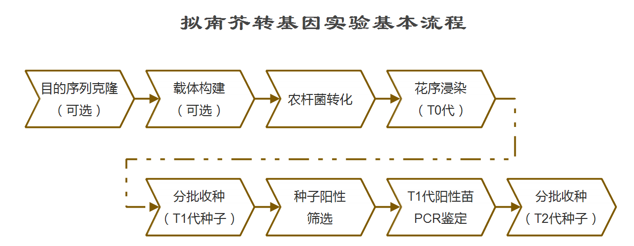 载体构建——农杆菌转化——花序侵染——分批收取种子及筛选(T0)——T1代阳性苗的PCR鉴定