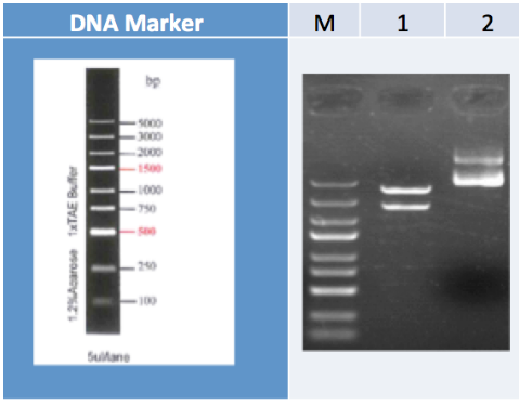 基因合成酶切鉴定 M: DNA Marker;1:质粒酶切产物; 2:质粒